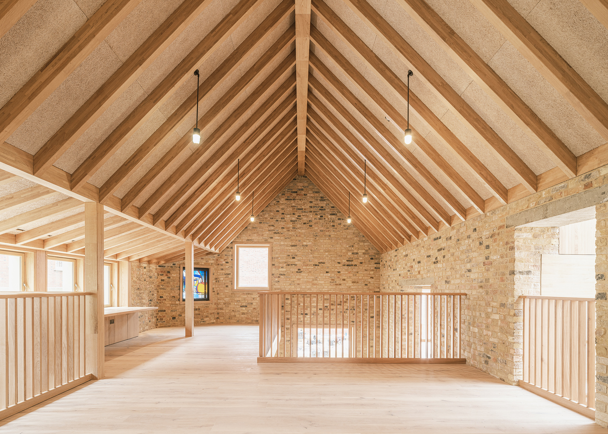 Material reuse sits at the heart of the new interventions. The two-storey School House is an exemplar of this ethos: its extension is built using bricks salvaged from the original building, ensuring continuity of colour, texture, and weathering while dramatically reducing the need for newly manufactured material. The result is a building that feels deeply connected to its past, not just visually but physically.