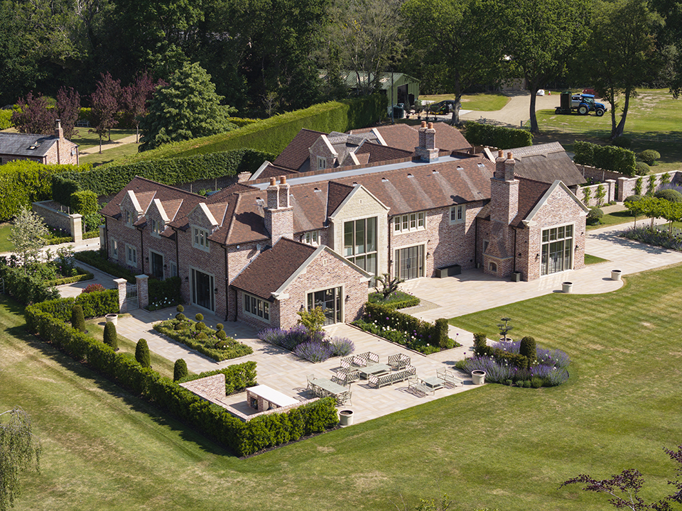Planning consent for Pine Cottage was achieved by utilising the site’s existing volume, enabling the delivery of a new-build home in a carefully interpreted Arts and Crafts idiom. From the outset, brick was positioned as the backbone of the material strategy, not simply as a cladding choice, but as the primary vehicle for anchoring the home to its setting.