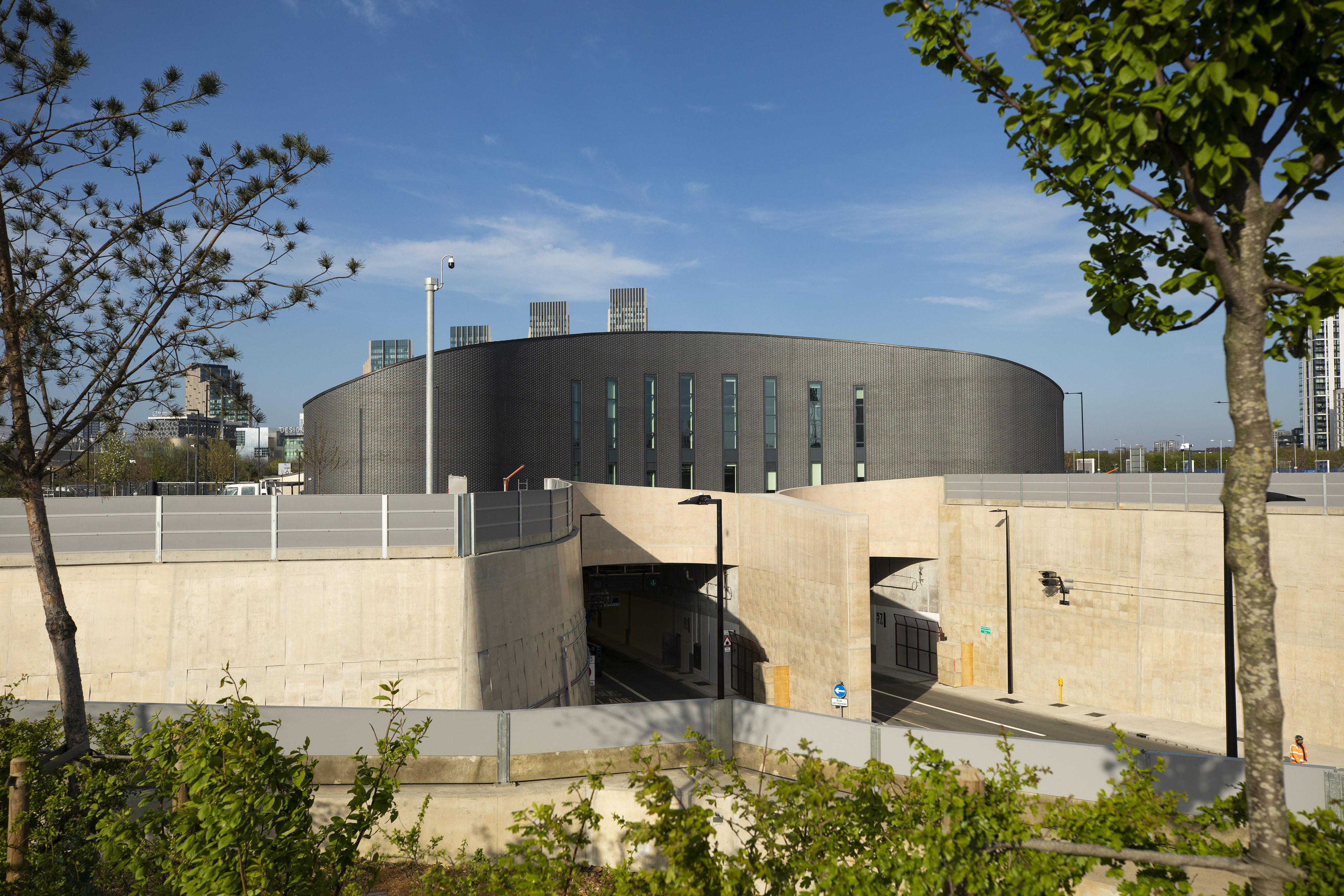 The architectural language of the portals is a dialogue between two sites. While the southern Greenwich Portal is characterised by its elegant, sweeping curves, the northern Silvertown Portal acts as a beacon, featuring a conical copper crown sat atop a robust masonry plinth.
