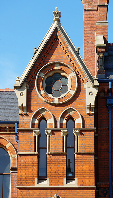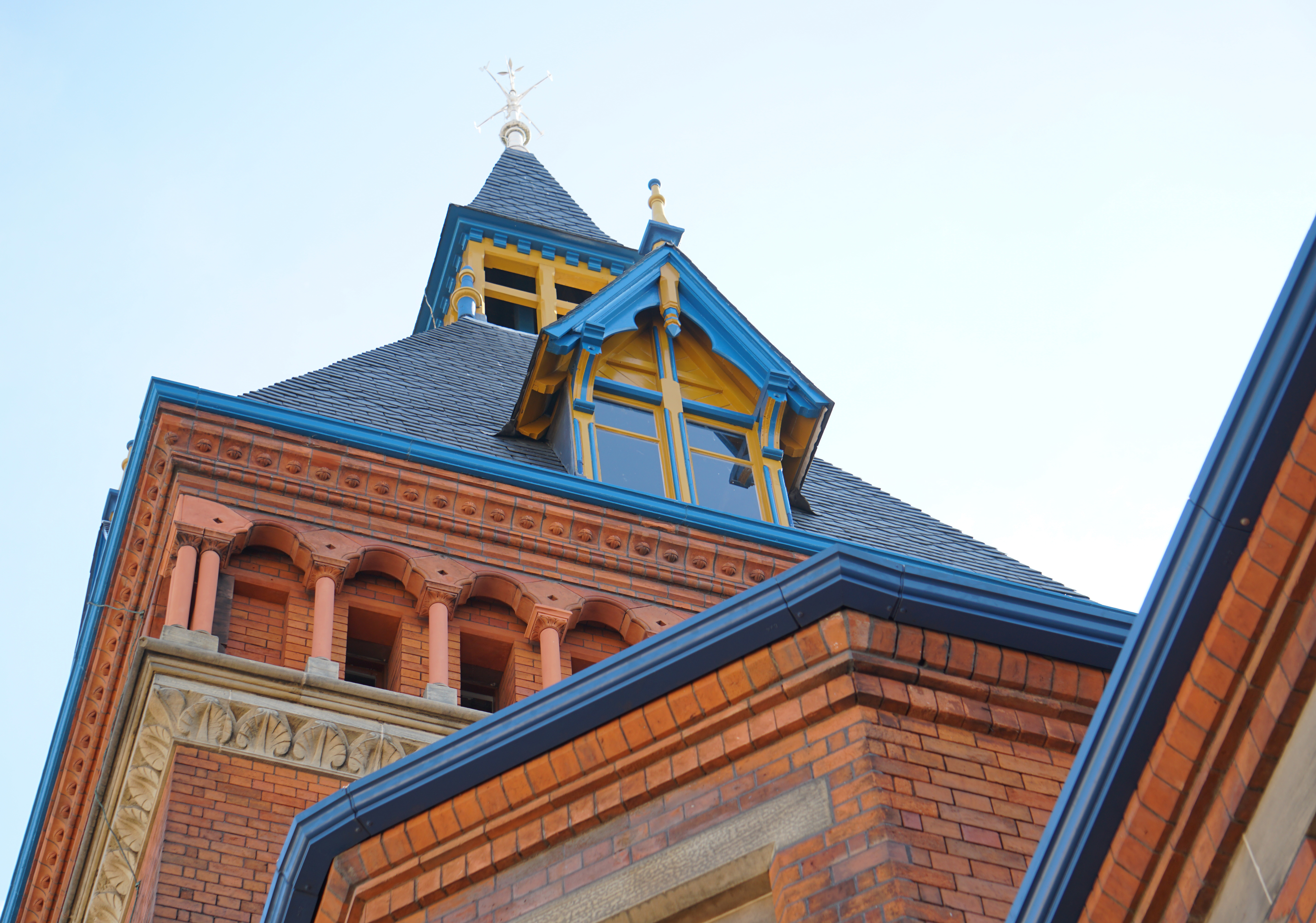 At the heart of the project was careful repair and reuse of original materials, which reduced the need for new resources. Traditional craftsmanship was combined with modern conservation techniques to restore detailed timberwork, replace and repair the slate roof and leadwork on the cupola dome, and refurbish more than 200 large windows, some with intricate stained glass. The iconic terracotta colonnade on the Town Hall tower was also restored, along with extensive stonework repairs. Missing architectural features, including a roof finial lost in 1916, were faithfully recreated using historical references.